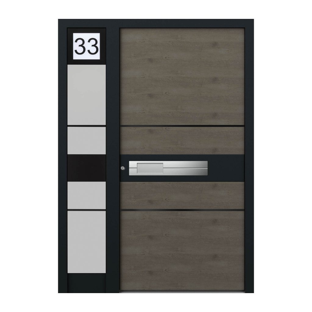 | Glas | Motivverglasung 1541, Hausnummer LED beleuchtet (2 Ziffern nach Wahl) |